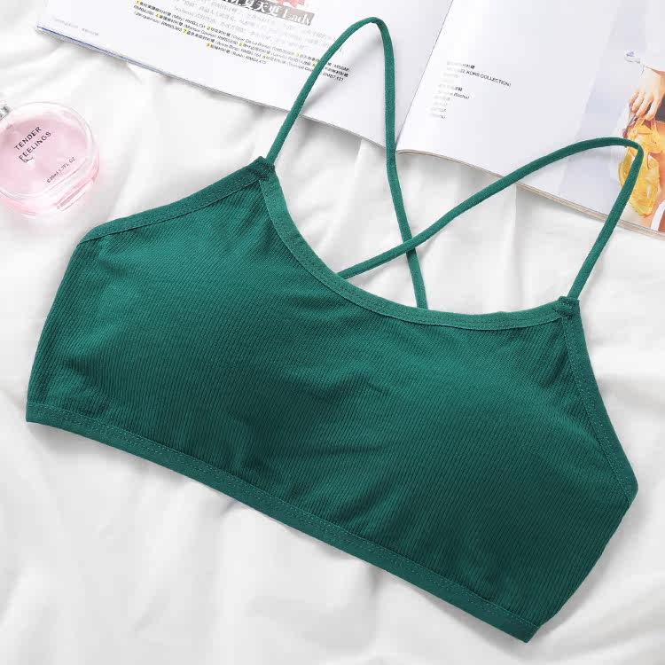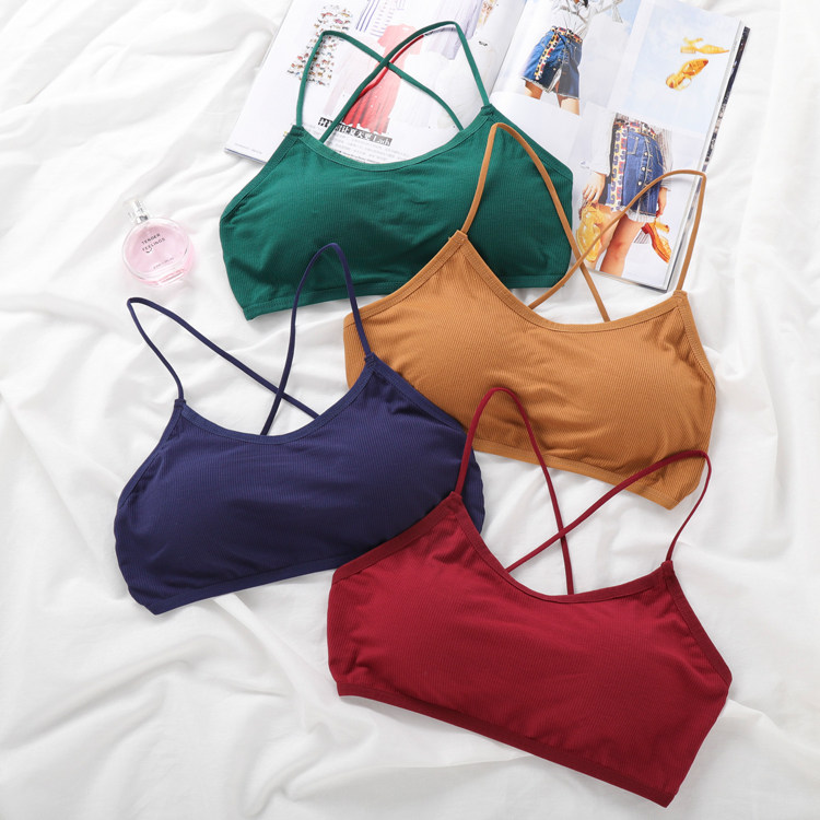 Girls without rims sports underwear Women's vest-style anti-walking bare chest bandeau short sexy gathered bra summer