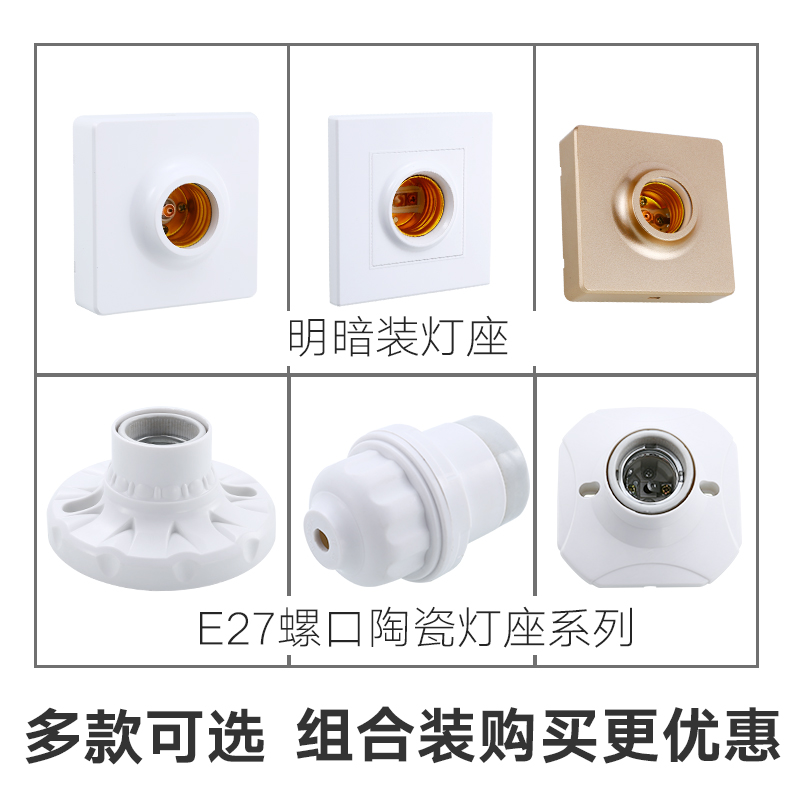 E27 lamp holder screw concealed lamp base 86 type LED bulb spiral dark wire box universal household screw lamp head