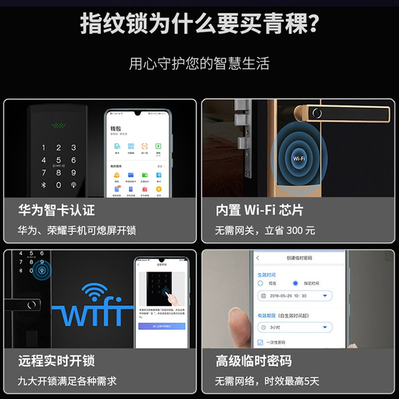 (E5H-Elegant Gold) Standard Lock Body Huawei Smart Card Certification Remote Real-Time Unlocking (E5H-Xuanying Black) Standard Lock Body Huawei Smart Card Certification Remote Real-Time Unlocking (E5H