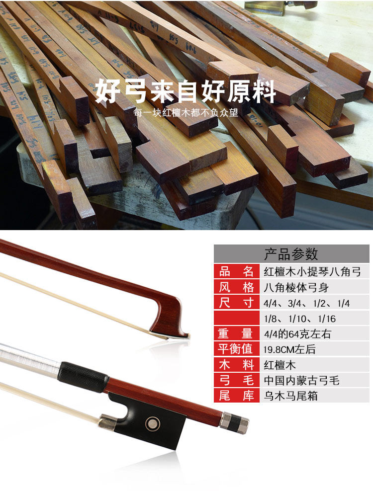Red sandalwood violin bow Playing grade octagonal pole bow Real horsetail hair accessories are not easy to deform the hair volume is plump