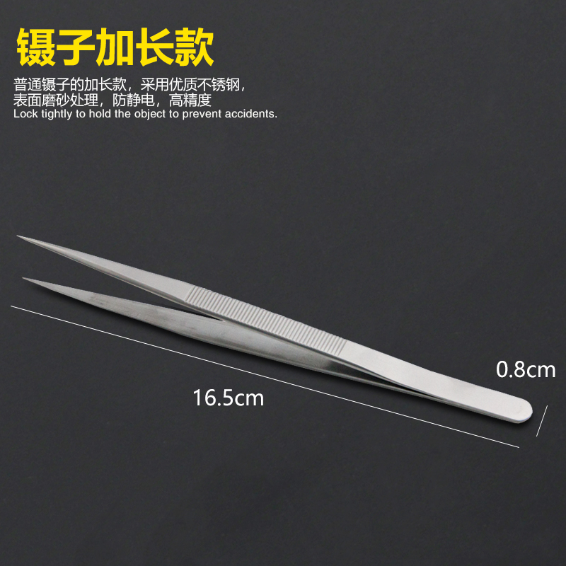 Mobile phone repair tweezers Embossed limit lengthened stainless steel thickened super hard special tip Sewing repair watch manual