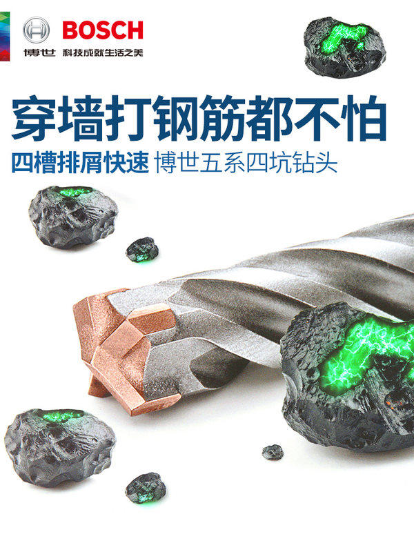 Bosch four-pit 5-series electric hammer impact drill bit round handle four-edged drill bit can drill reinforced wall concrete 15*160mm