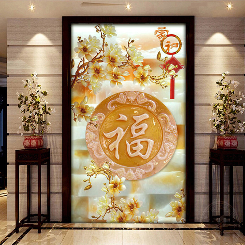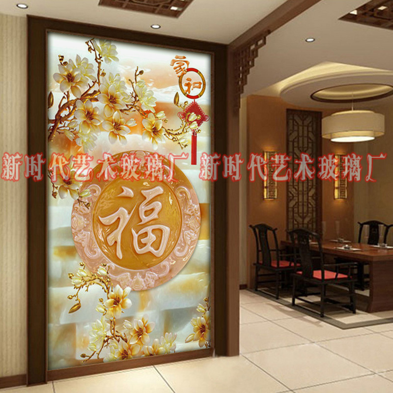 Chinese art glass background wall Xuanguan frosted painted steel chemical technique fu living-room screen partition custom-made