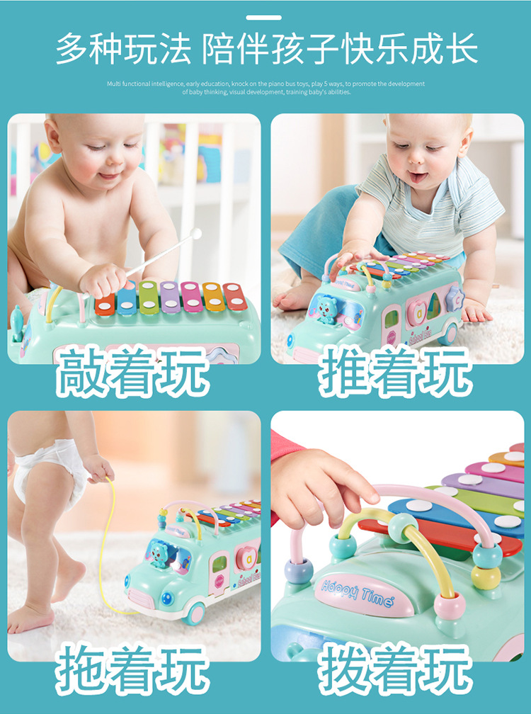 Baby Toy Gift Box Basra Rope Car Children Building Blocks Hundreds Treasure Chest of 0-1-3-year-old Music Early Education Puzzle Puzzle