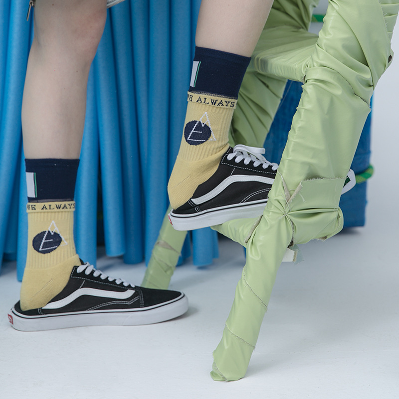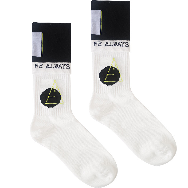 WE ALWAYS STAY THERE DOUBLE Luo Kou English tide SPRING AND AUTUMN PURE COTTON sports SOCKS MEN's AND WOMEN'S SOCKS MEDIUM TUBE SOCKS