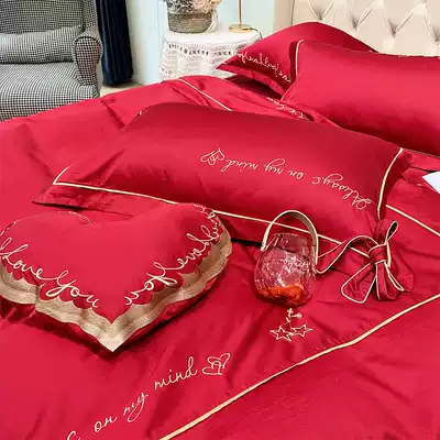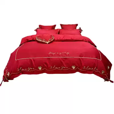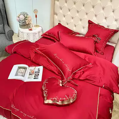 Wedding four-piece group cotton European pink princess style big red wedding bed linen quilt cover bedding