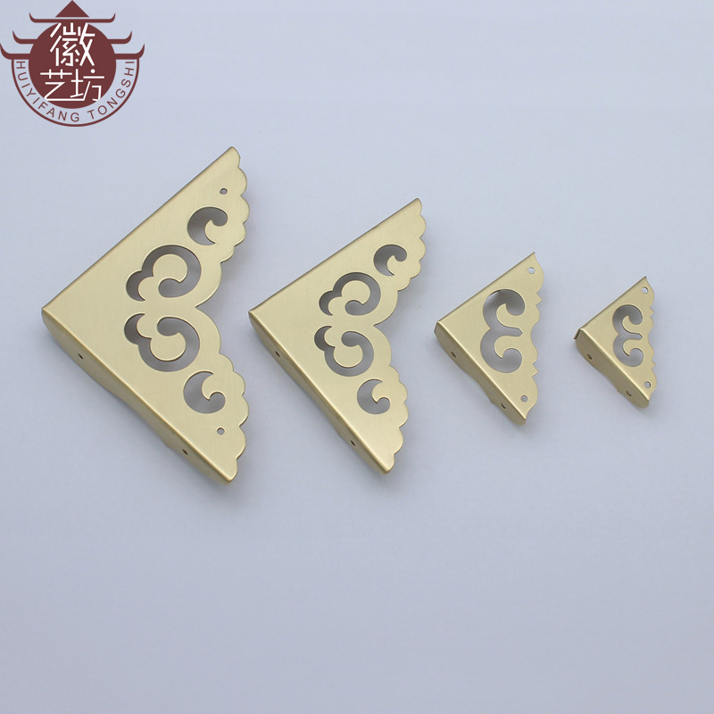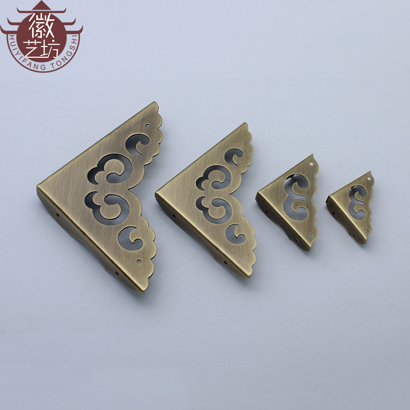 Wooden box corner hardware accessories Chinese antique furniture Xiangyun hollow corner code pure copper edge protection jewelry box corner piece