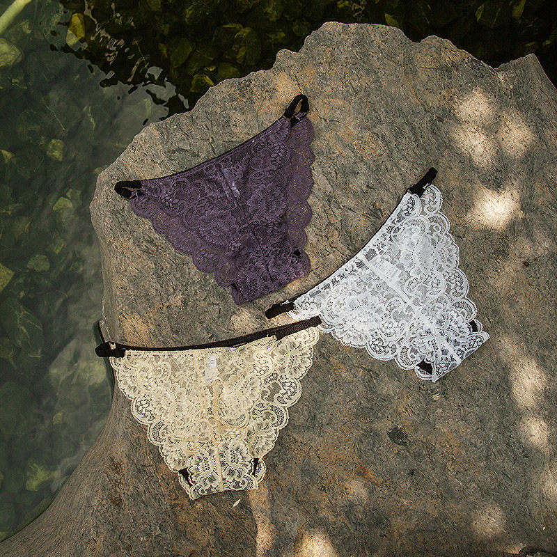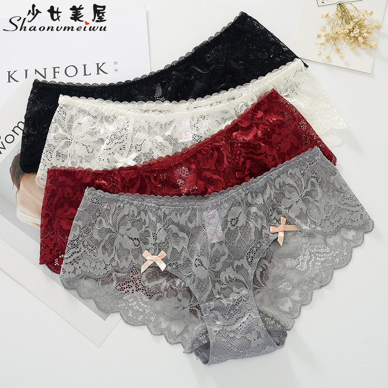 (3 pieces)Girl beauty house panties gift box Transparent sexy lace briefs comfortable thin low waist summer
