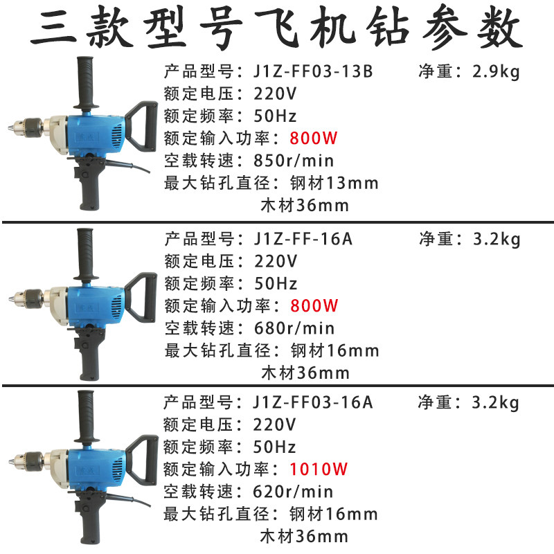 Dongcheng aircraft drill high-power 16A electric drill iron industrial woodworking batch soil paint paint mixer Dongcheng