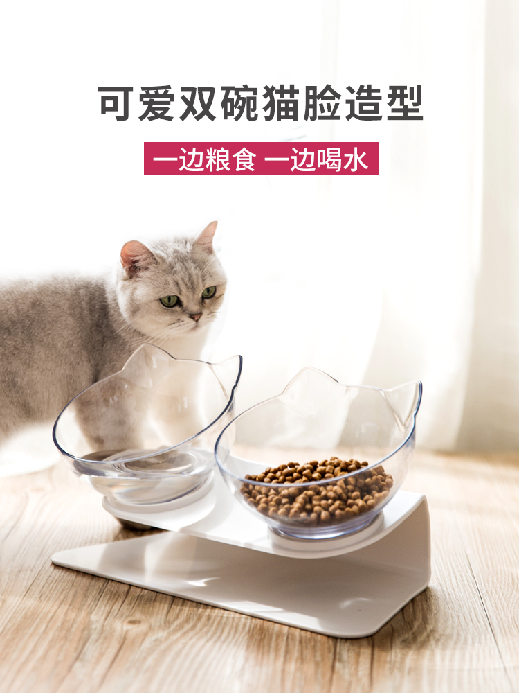 Cat Bowl Double Bowl protection for cervical spine Anti-catter Cat Basin Dogs Cat Food Basin Gaffi Special Flat Face Bowl Pet Supplies