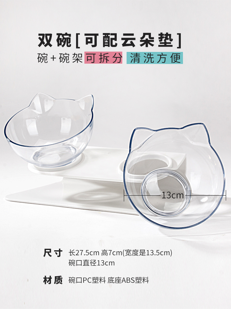 Cat Ear Transparent Double Bowl Cat Ear Transparent Double Bowl White Cloud Mat Cat Ear Transparent Double Bowl Pink Cloud Mat Cat Ear Transparent Double Bowl Grey Cloud Mat