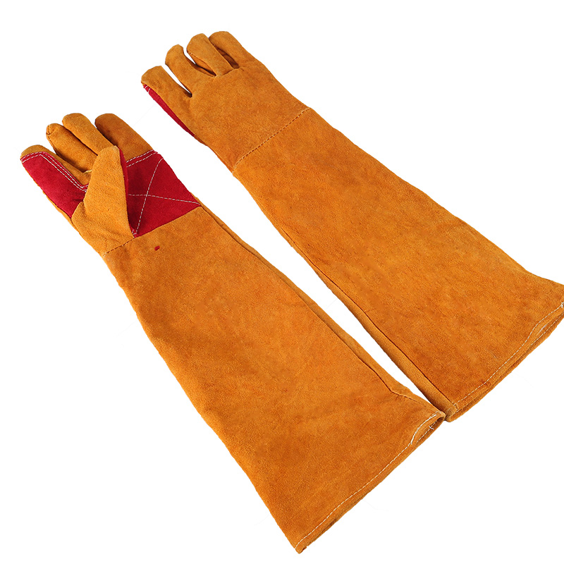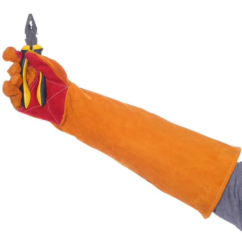Great electric welding glove Cow Leather High Temperature Resistant Lengthened section Anti-burn welding work gloves abrasion resistant 60cm fireproof thickened gloves