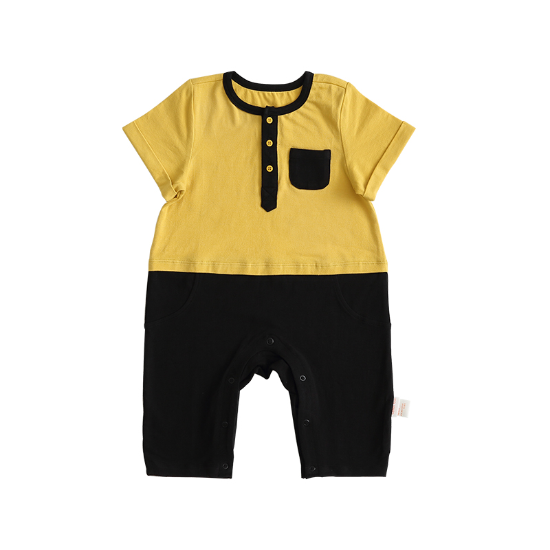 Cotton Hall baby knitted short-sleeved jumpsuit 2019 spring and summer thin section children's baby romper romper fake two pieces