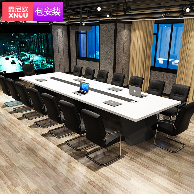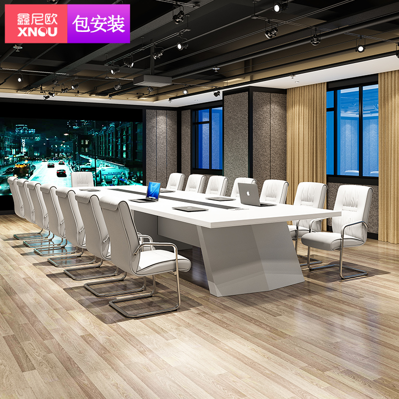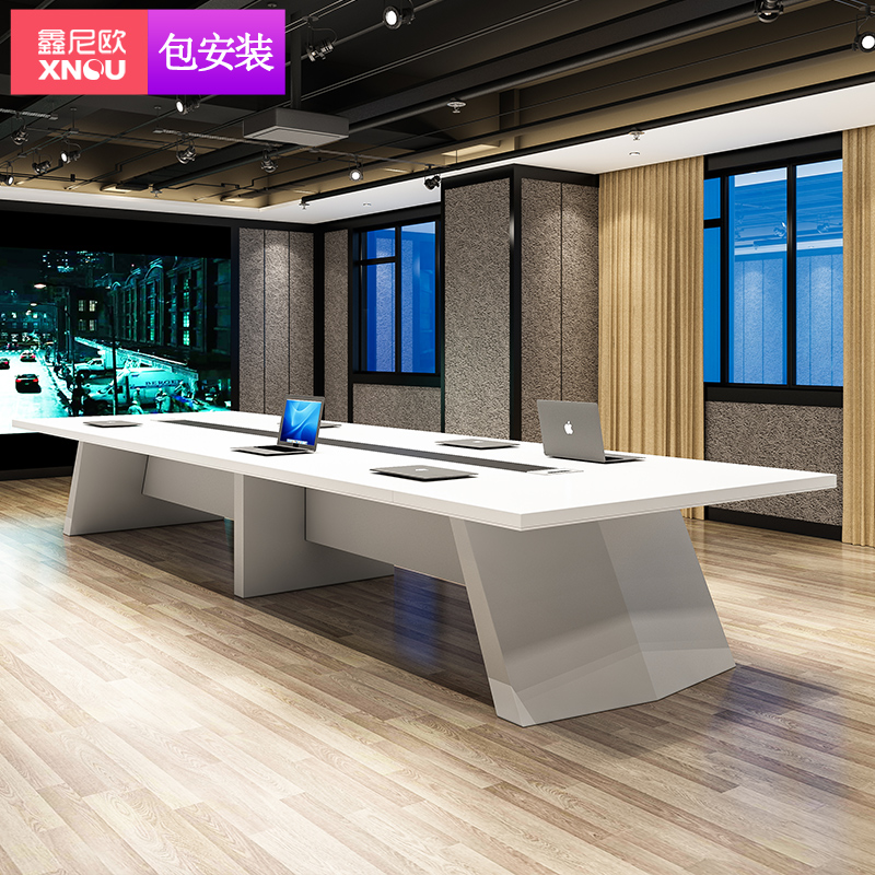 Nordic Conference Table Minimalist Modern Baking Paint Conference Table And Chairs Combined Company Meeting Room Long Table White Office Furniture