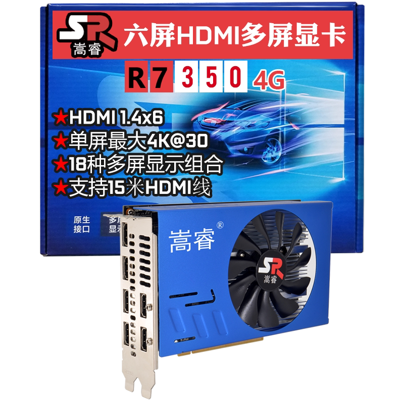Songrui R7350 six-screen HDMI graphics card multiscreen graphics card 6 split screen graphics card one drag six new 4G