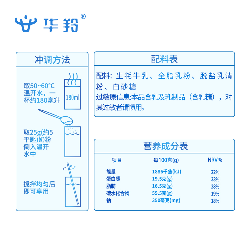 Raw yak milk full fat milk powder desalinated whey powder white sugar
