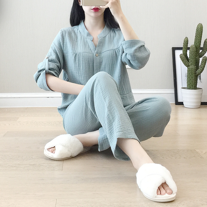 Spring and Autumn Pajamas Ladies Cotton Double Layer Cotton Gauze Homewear Summer Thin Cotton Washed Crepe Two-piece Suit