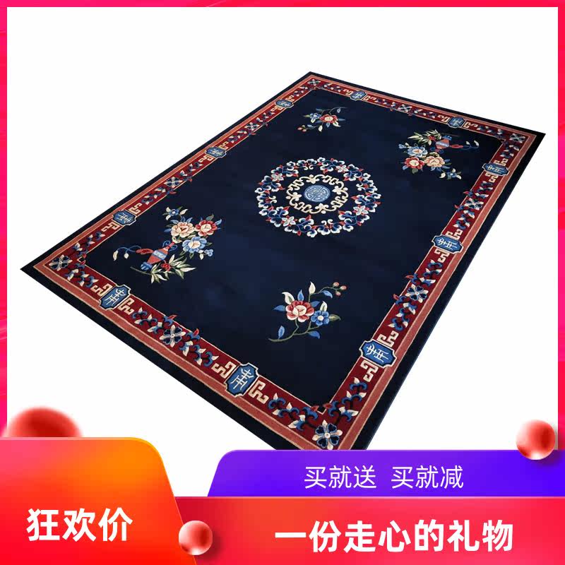 New Chinese Classical Traditional Living Room Bedroom Tea Table Book House Handmade Cut Flowers Pure Wool Rug Carpet Bed Blanket