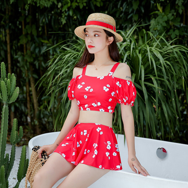 Swimsuit women's three sets of two style conservative explicit corners to woo sexy one-word territorial sea side vacation 2021 new