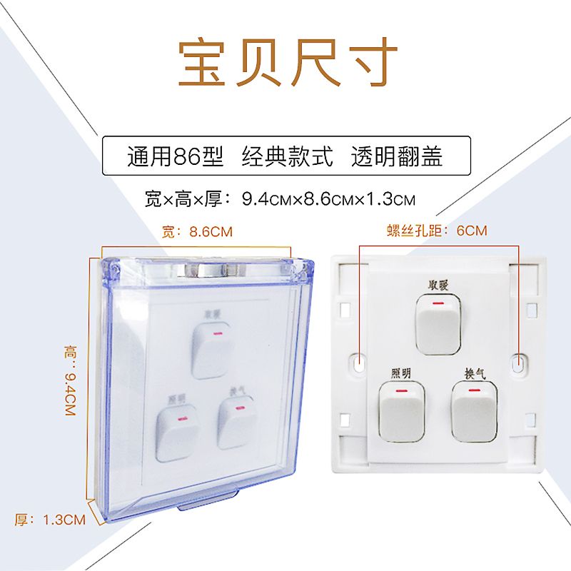 Bathroom Light Warm Bath Bully triple open switch European and American 10A86 Type of anti-water toilet 3 open control transparent flip-p-Taobao