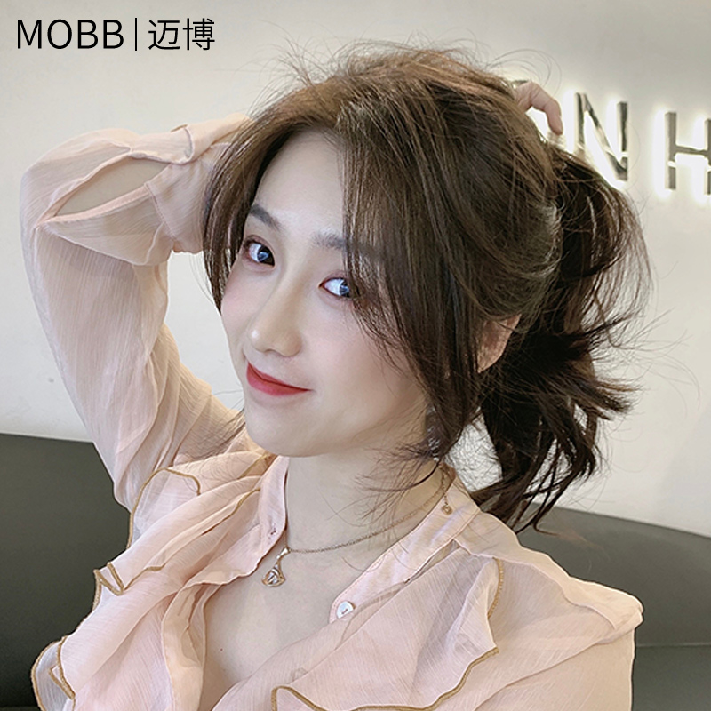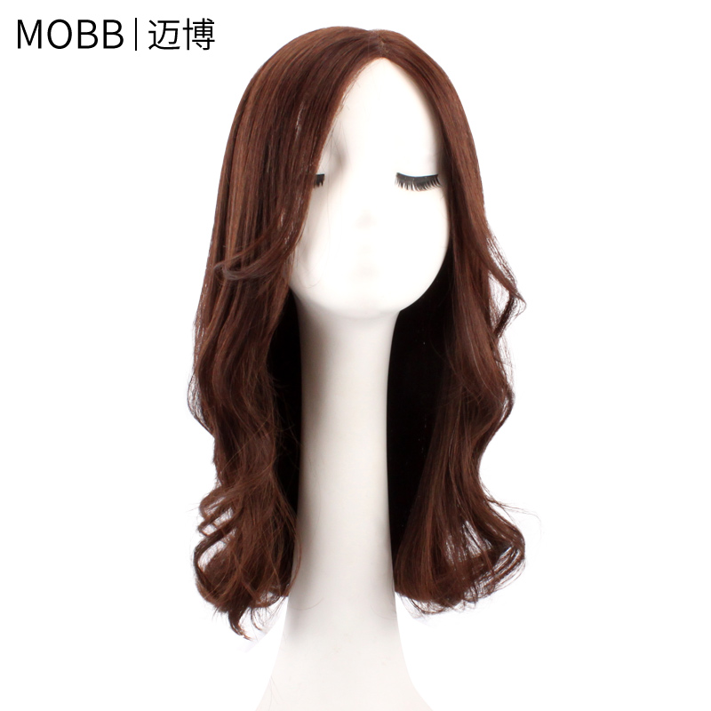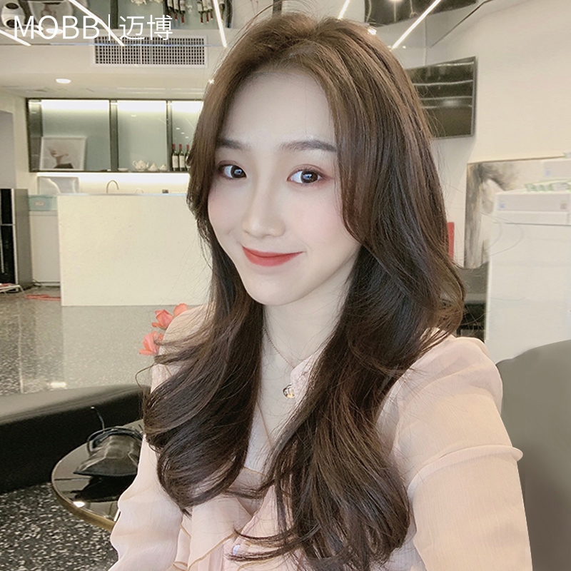 Wig women's long hair Korean eight-character Liuhai long curly hair big wave real life hair air cushion hot natural headgear