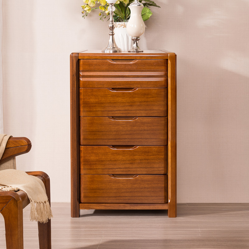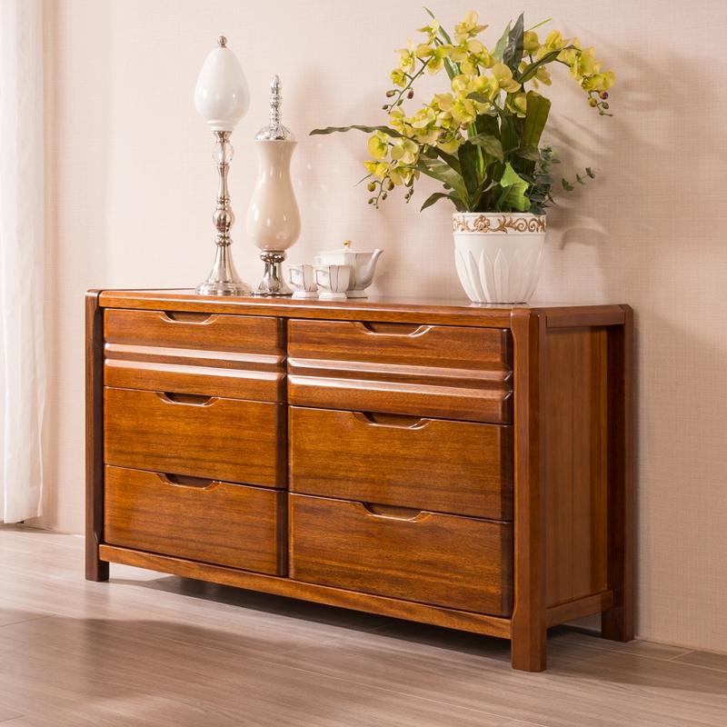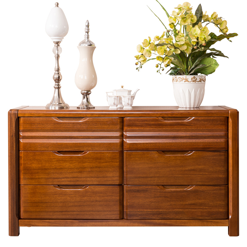 Full solid wood six-drawer cabinet Bedroom TV cabinet Walnut Chinese storage storage living room five-drawer cabinet Low cabinet Chest of drawers