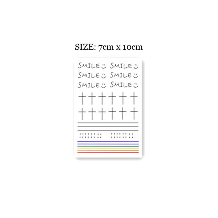Flower Arm Girl TATOO 25 Black and white Cross Rainbow Color Line Round point English smile finger tattoo sticker