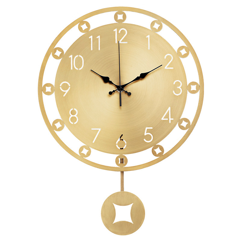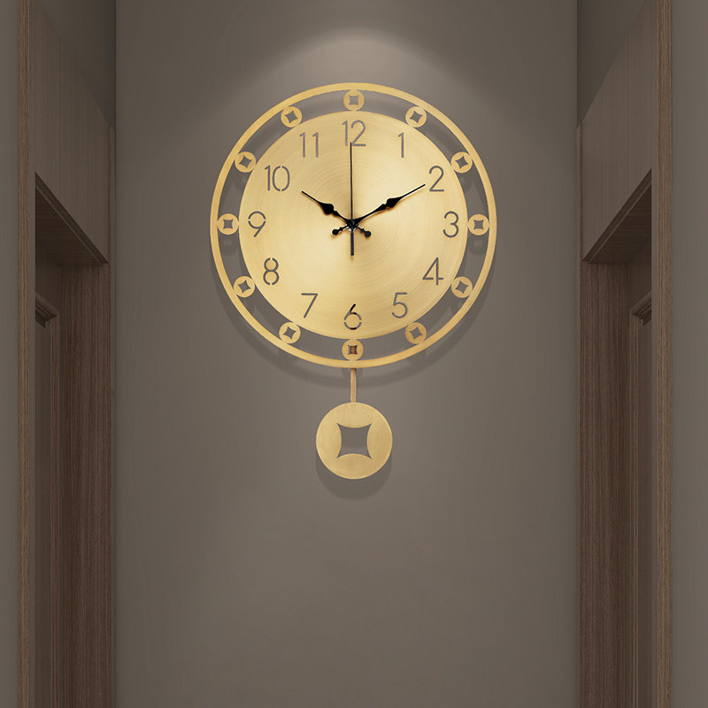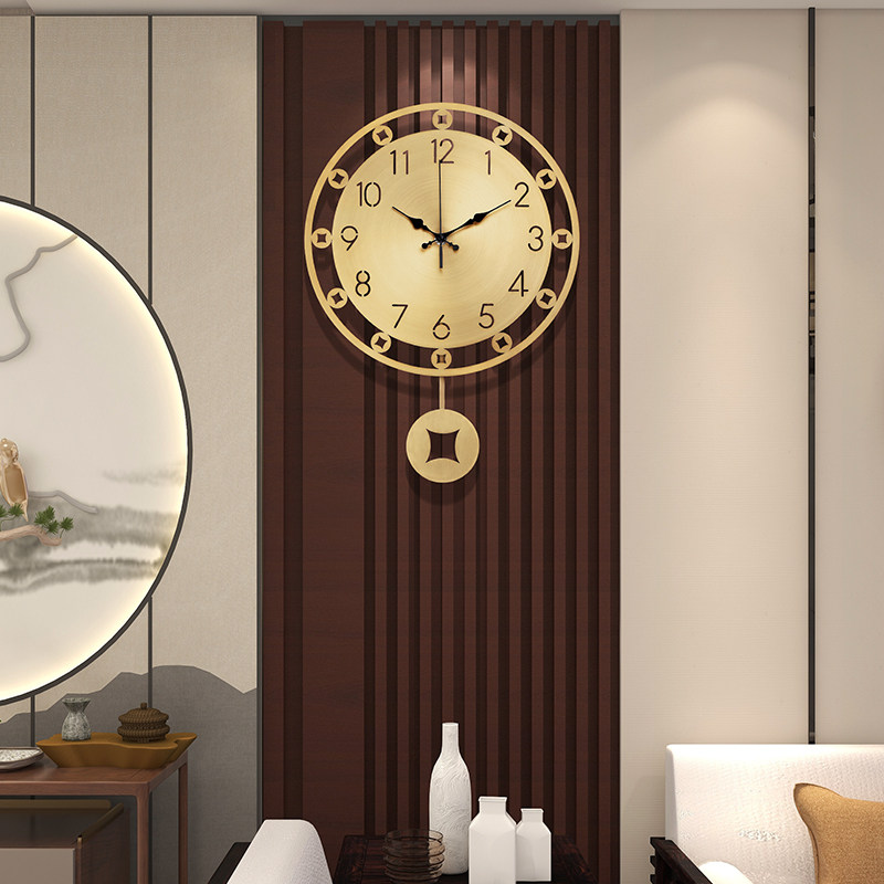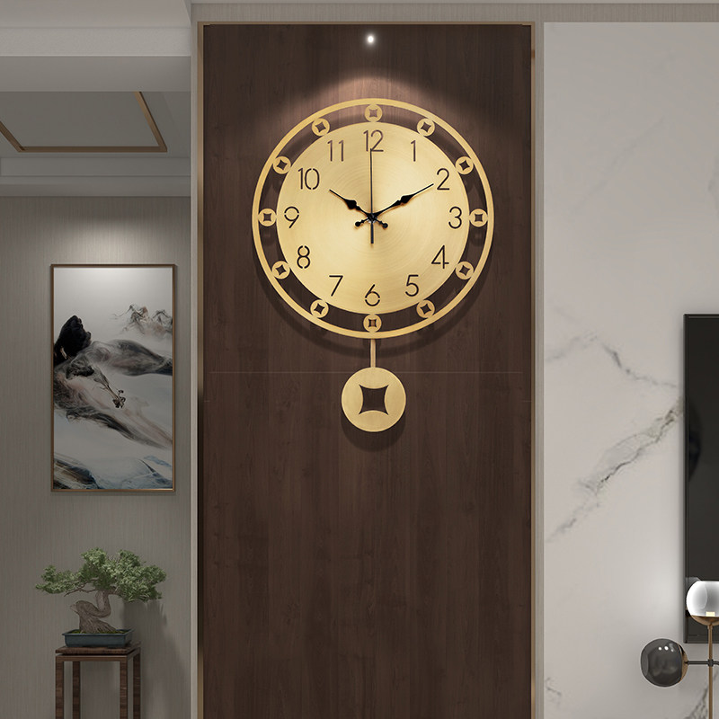 Chinese wall clock living room creative home clock 2022 new fashion wall watch pure copper modern high-end decorative clock