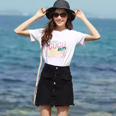 Denim short pants skirt women Summer 2020 new fashion loose large size skirt pants high waist slim a character one fake two pieces