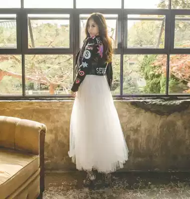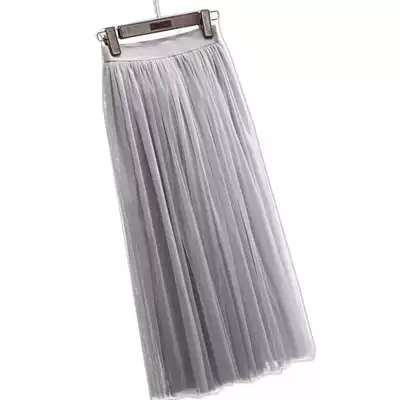 Mesh skirt skirt Mid-length high-waisted a-line skirt Tutu fairy summer black veil skirt thin punk rock style