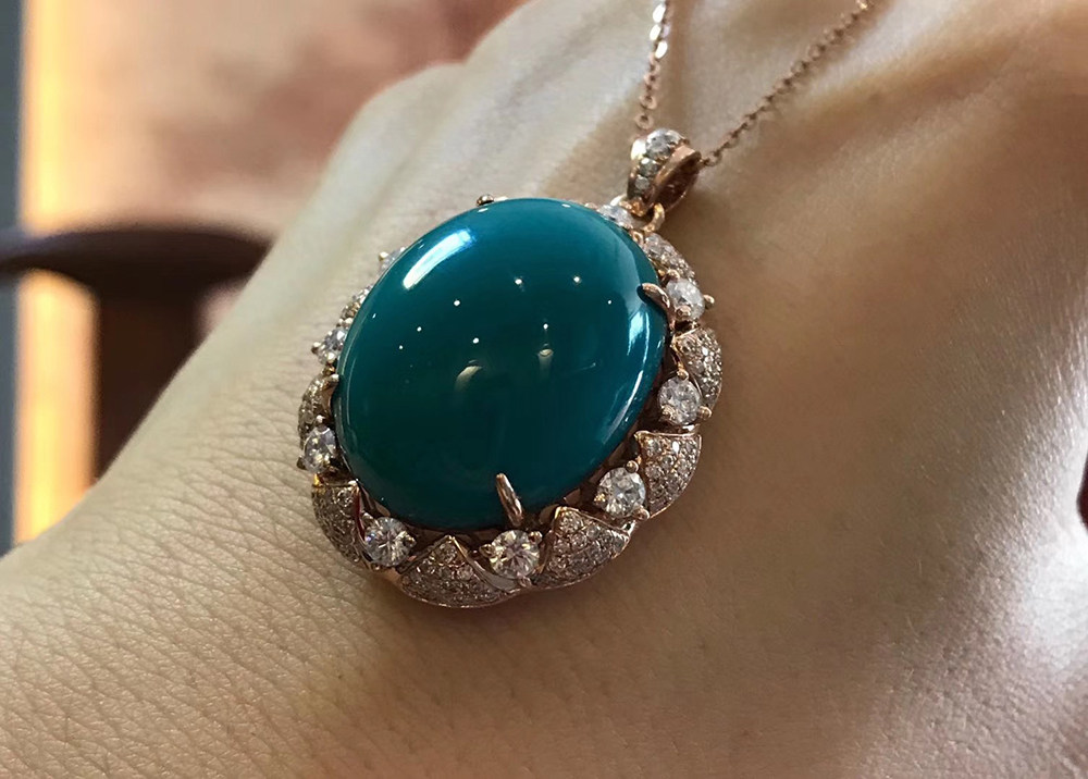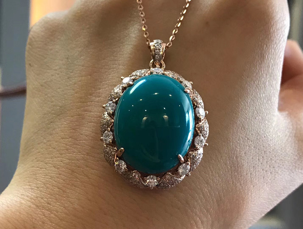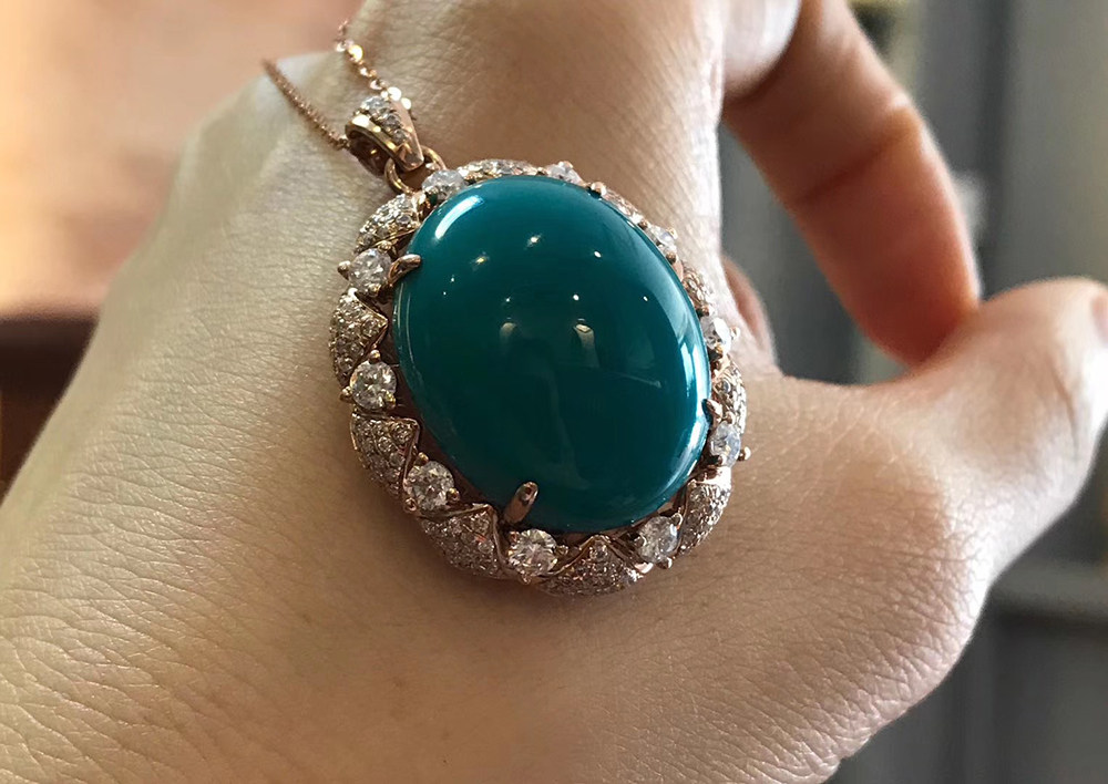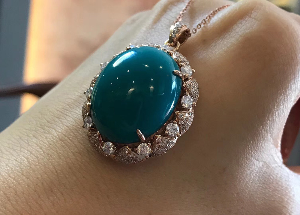 Yajiao Mountain Turquoise Pendant Large Egg Noodle Women's Diamond Necklace 18K Gold Set With Old Oily Emerald Jade Ring Face