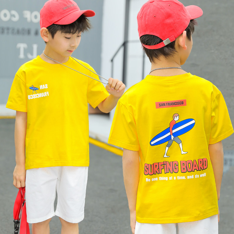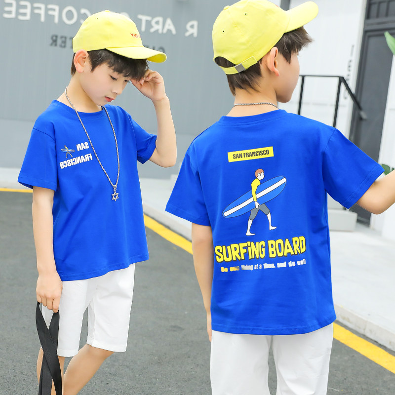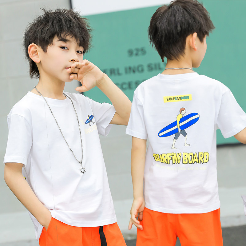 Boys short-sleeved t-shirt pure cotton tide children 2021 summer new foreign school children's children's T-shirt children's children's clothing men