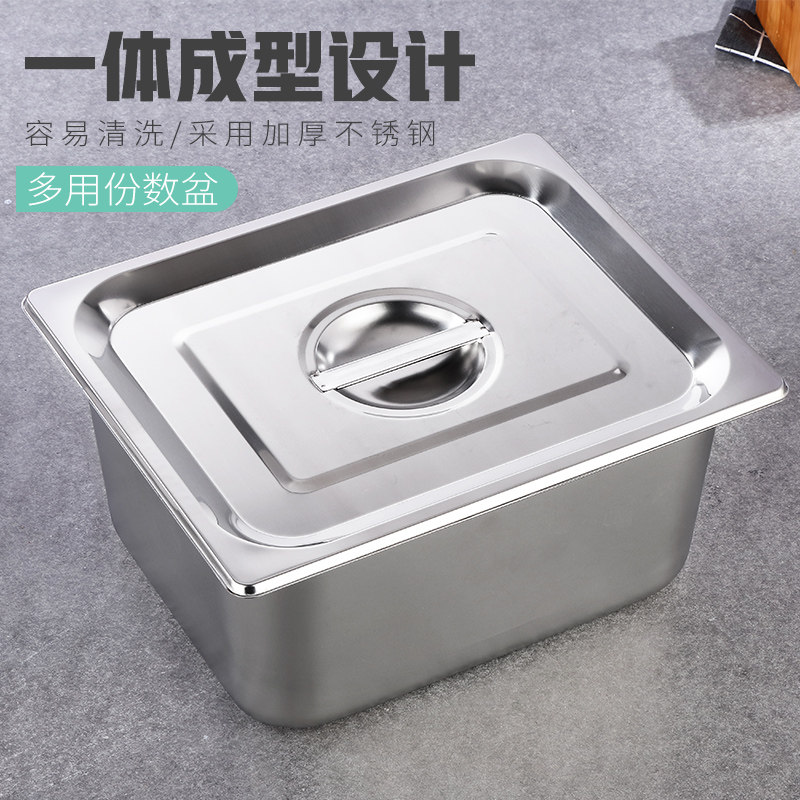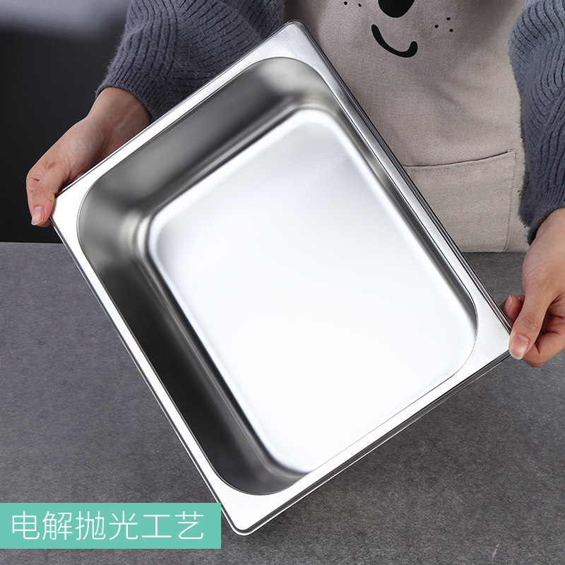 Thickened stainless steel serving basin rectangular basin with cover canteen food vegetable basin fast food car serving basin box dinner plate