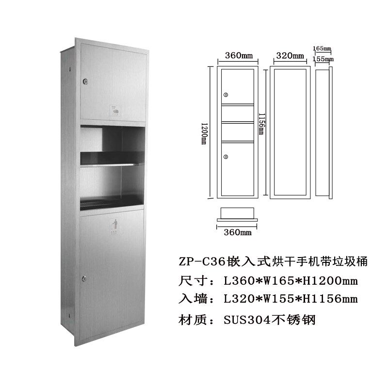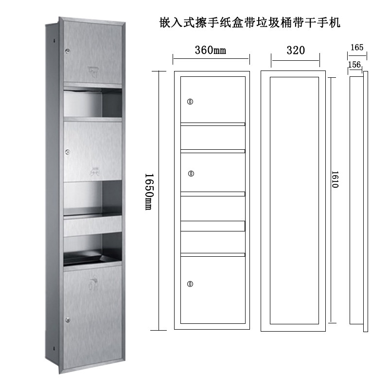 Stainless steel three-in-one toilet paper box with drying mobile phone trash can All powder room embedded wipe paper box rack