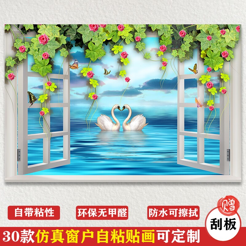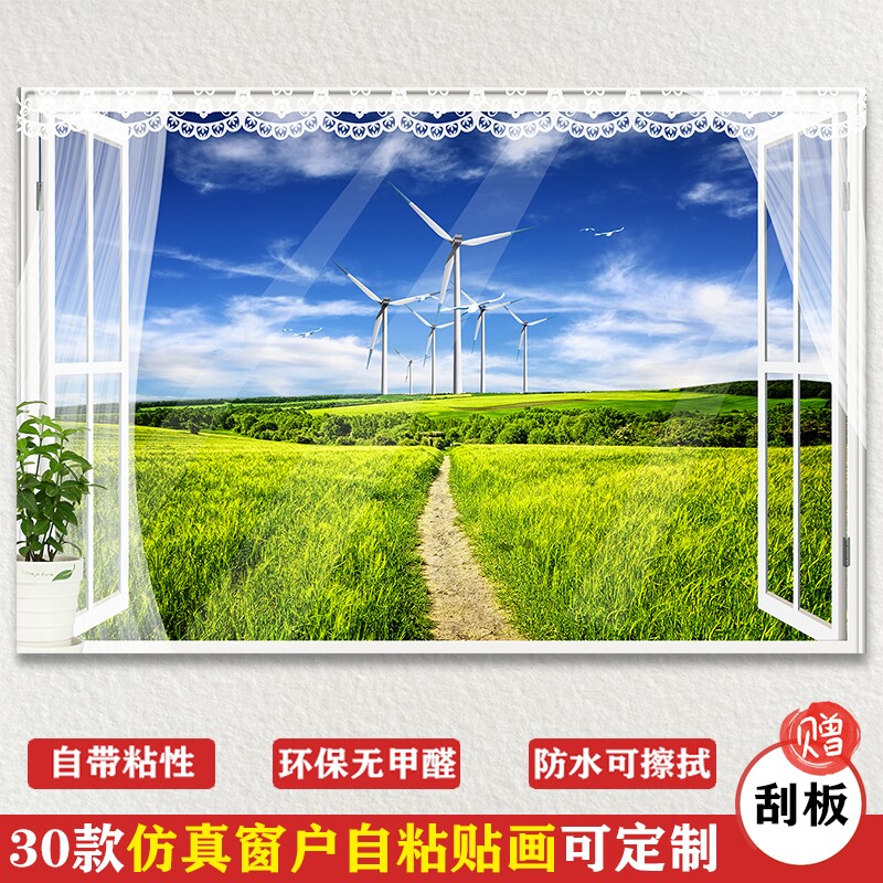 Simulation window self-adhesive stickers sea view forest scenery wall stickers living room background bedroom custom creative decorative painting