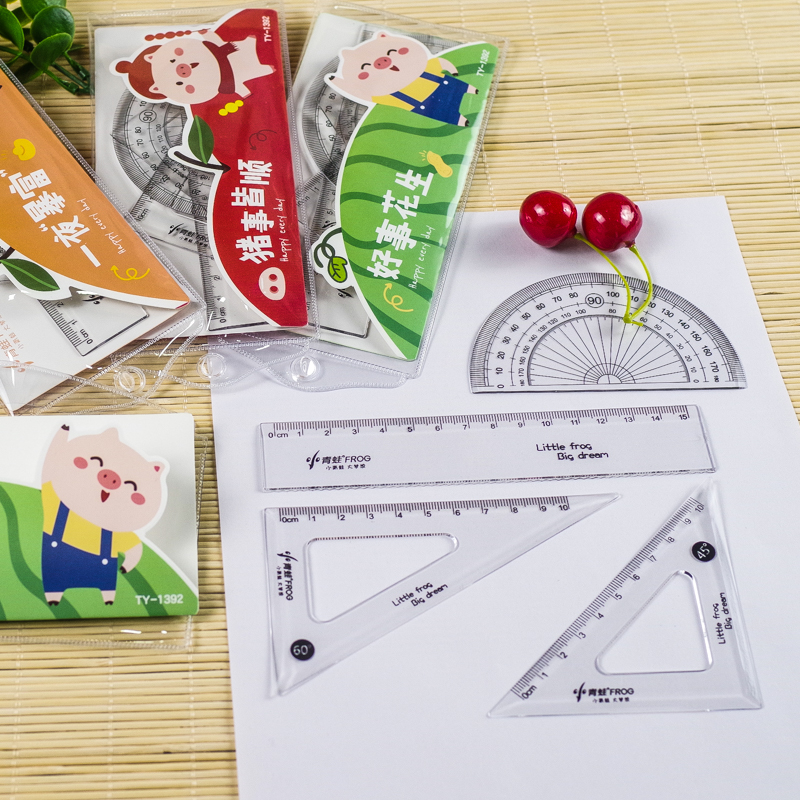 Student sleeve ruler four sets of 15cm triangular plate wave curve squared ruler transparent suit for students' supplies