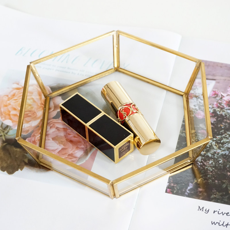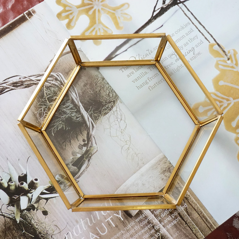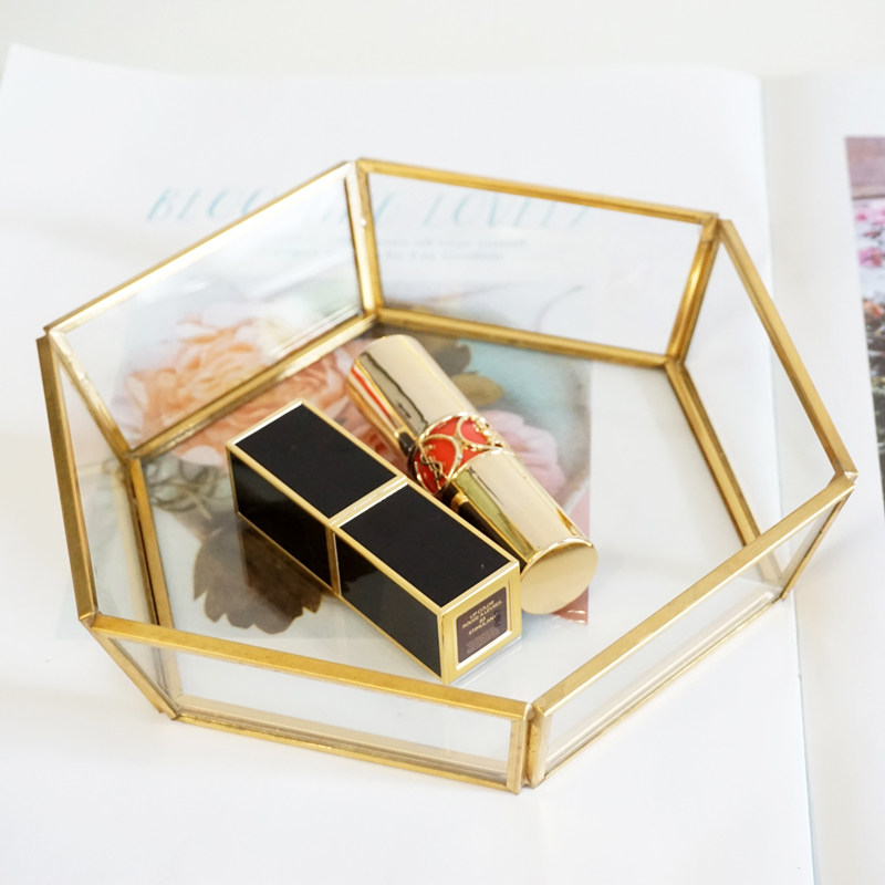 Eurostyle minimalist wind brass hexagon glass containing disc hexagonal tray table accessories containing finishing dishes-Taobao