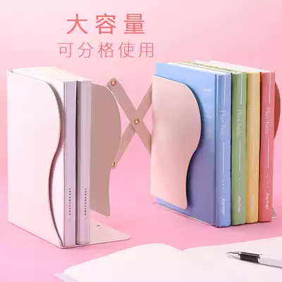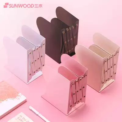 Three-wood retractable book stand creative ins style high school students simple shelf book shelves for high school students to use the bookshelf table folding storage book Simple clip book desktop iron bookshelf book separation
