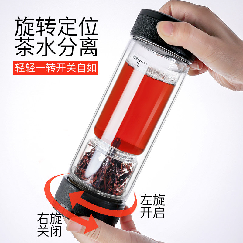 Tea love Tea water separation bubble tea cup Double glass portable filter travel tea cup Men's high-grade water cup
