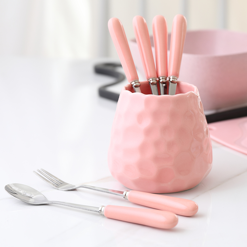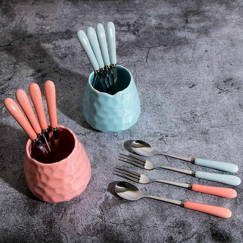 White fork 4 light blue fork 4 branches pink fork 4 branch Phnom Penh fork 4 branch light blue spoon 4 branches of pink spoon 4 white spoon 4 branches Phnom Penh spoon 4 white containing 6 fork white