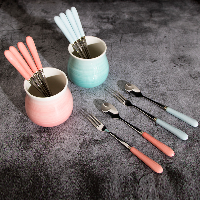 Creative Cute Fruit Fork Ceramic Stainless Steel Fruit Sign Dessert Fork Home Children Small Fork Suit Eating Fruit