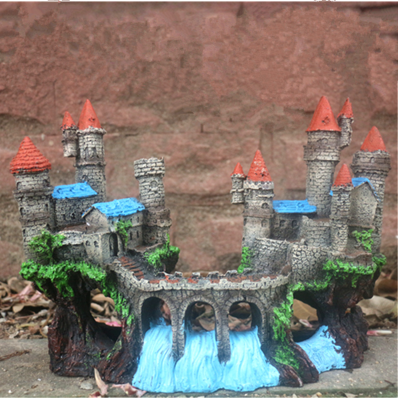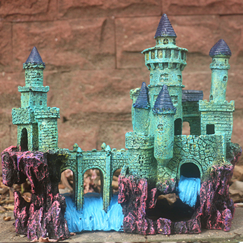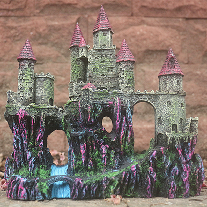 Fish tank Rockery Castle decoration landscaping package Simulation water plant decoration house Escape cave European style Castle house
