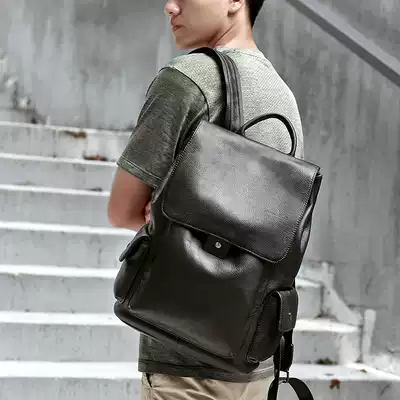 Hedener's new leather back backpack men's trend backpack travel bag fashion casual student school bag computer bag
