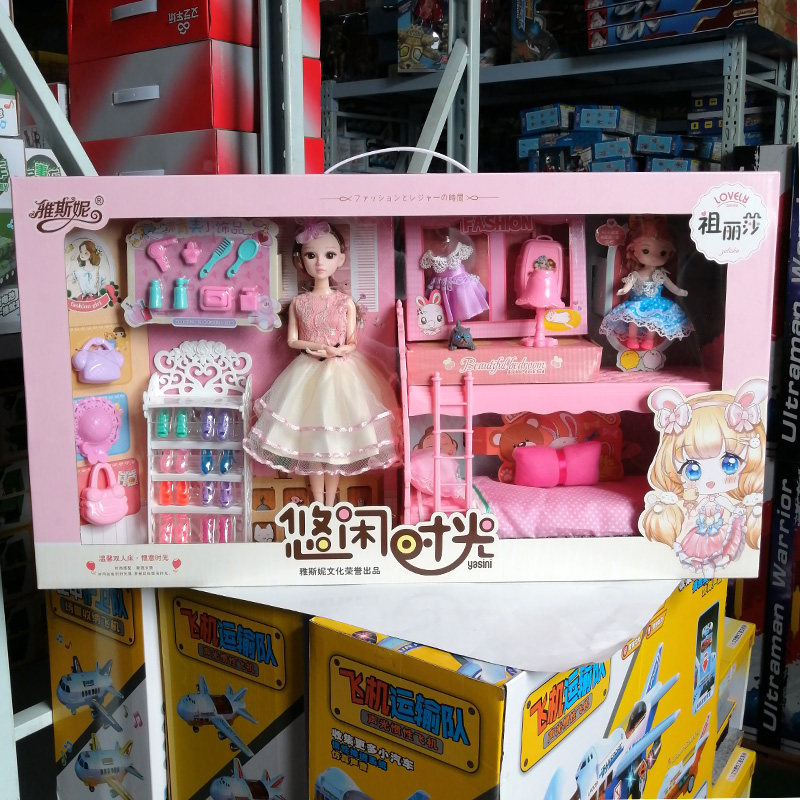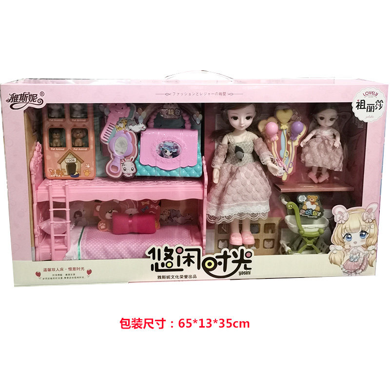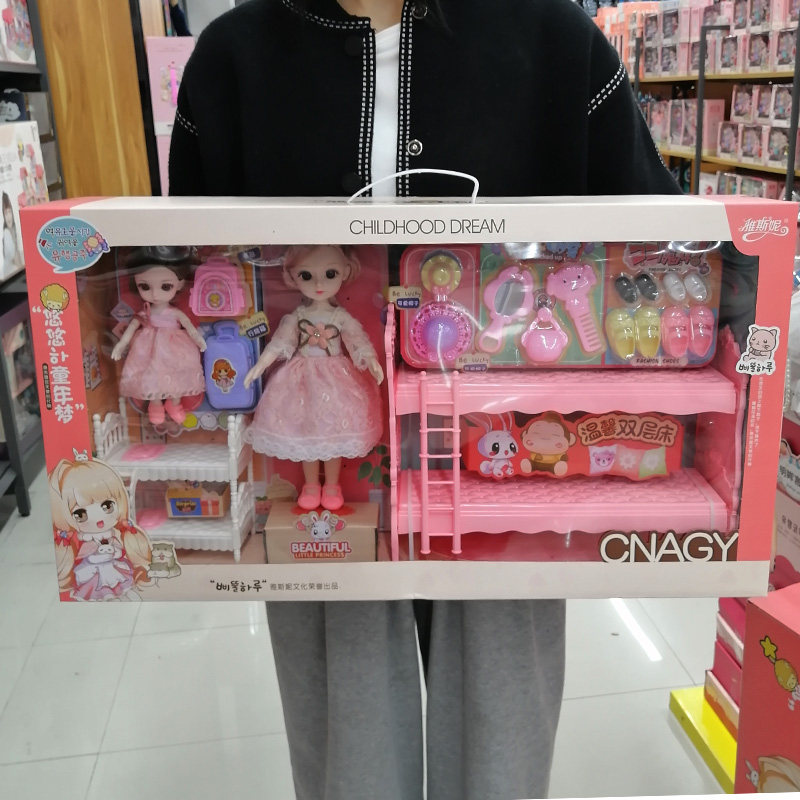 Double bed doll color random gift sticker bracelet new doll trolley case bicycle with sound effect rainbow princess bunk bed gift sticker bracelet colorful playground 755-112 frog playground 736
