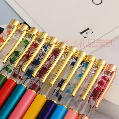 Handmade immortal dry flower metal gel pen student diy handmade gift custom ballpoint pen laser lettering Logo