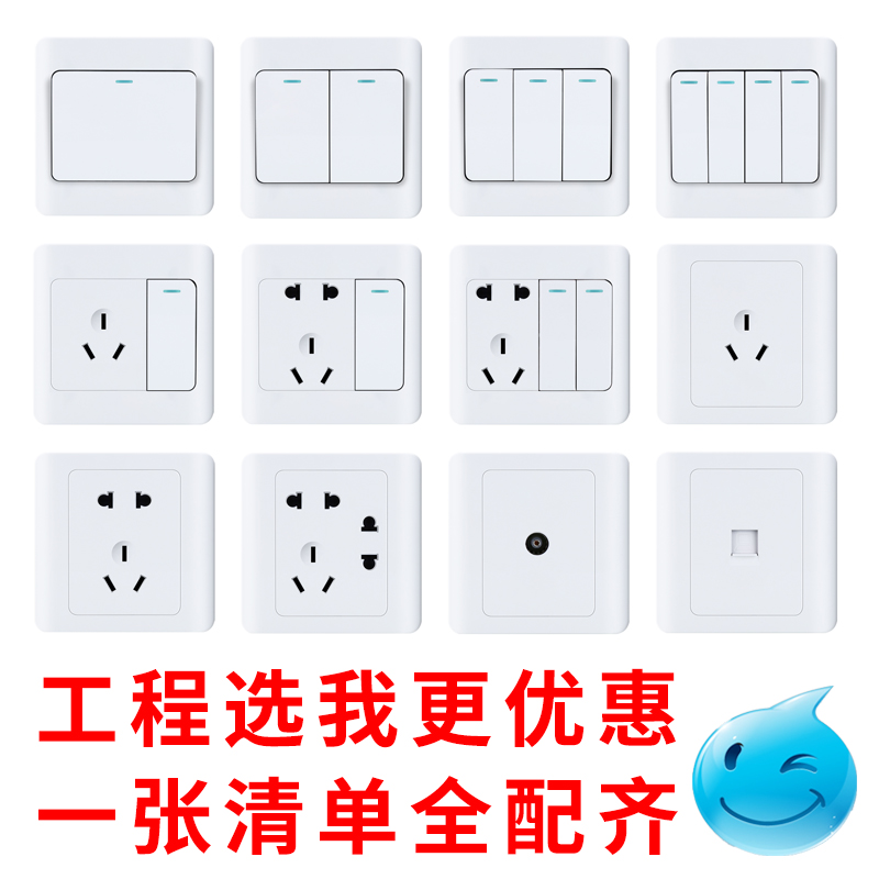 International electrical switch socket 86 type household white wall light switch panel two open double cut switch