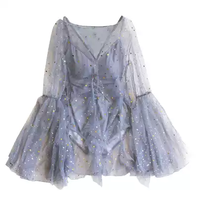 Swimsuit female summer fairy Korean ins net red one-piece conservative belly cover thin sexy fairy fan hot spring swimsuit
