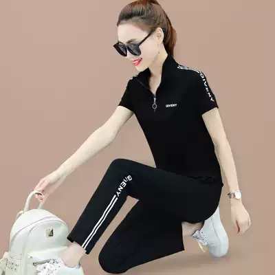 Short sleeve trousers sports suit women summer 2021 New Fashion loose large size Cotton running casual wear two-piece