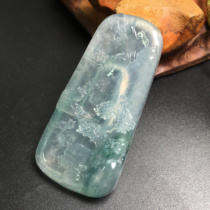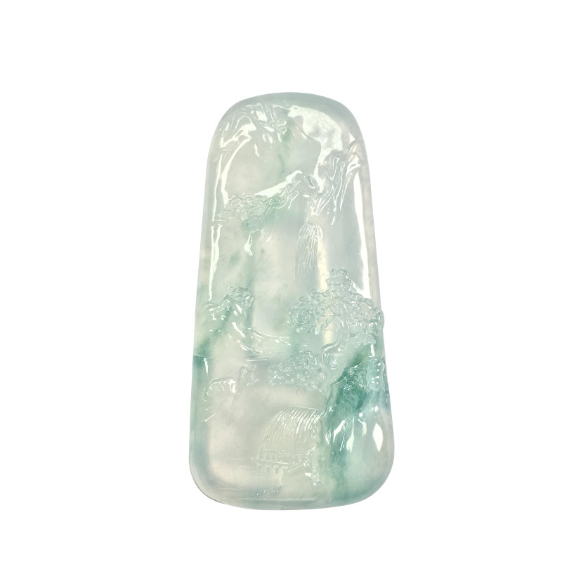 Quarry Weng Natural Burmese Emerald Floating Green Flower Landscape Brand Old Water Run A Jade Brand Pendant