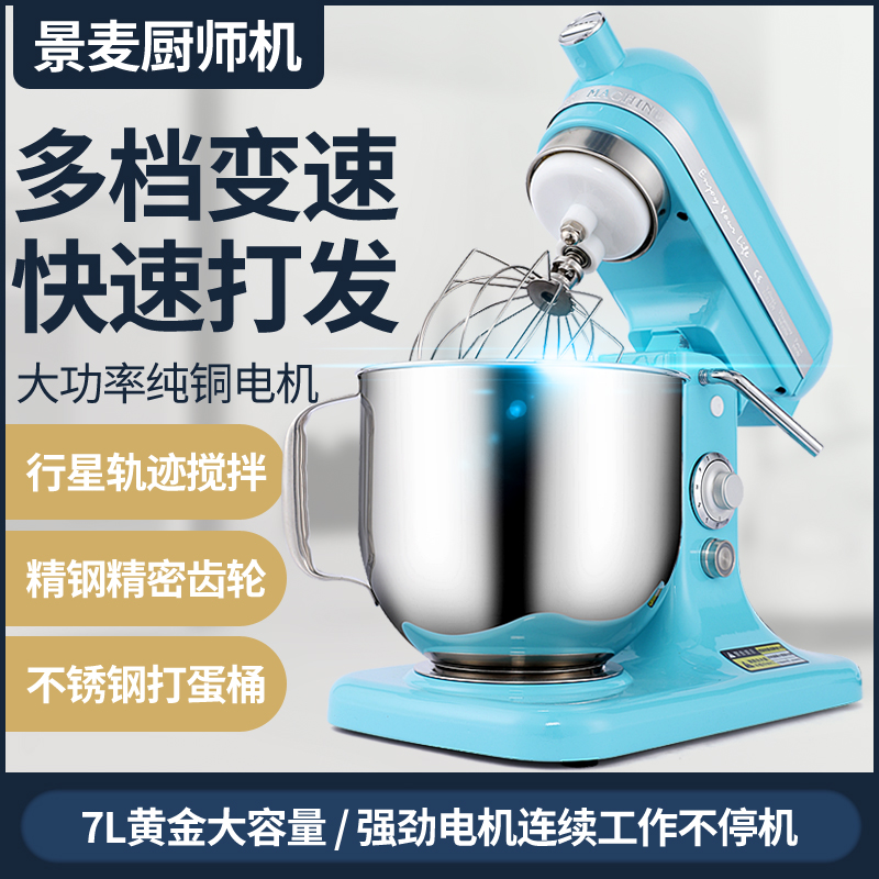 Jingmai commercial chef machine and noodle machine commercial egg beater household 7L mixer kneading fresh milk machine milk cap machine